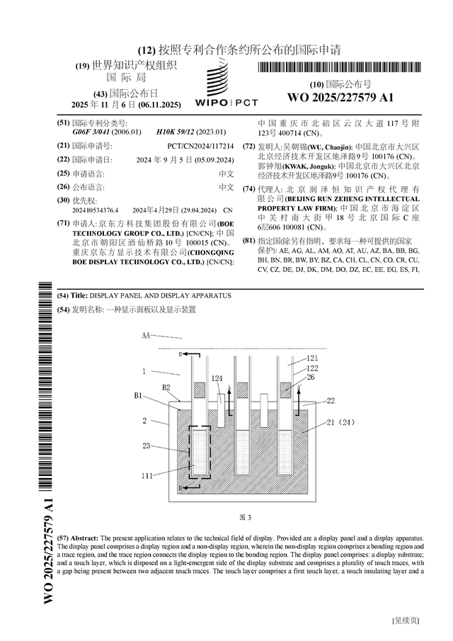 证券之星消息,根据企查查数据显示京东方A(000725)公布了一项国际专利申请,专利名为“一种显示面板以及显示装置”,专利申请号为PCT/CN2024/117214,国际公布日为2025年11月6日。