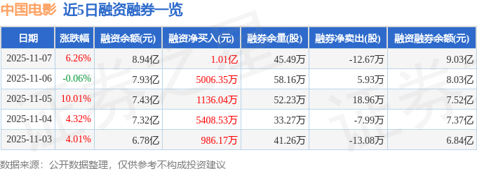 中国电影融资融券信息显示,融资方面,当日融资买入3.69亿元,融资偿还2.68亿元,融资净买入1.01亿元,净买入额两市排名第13,连续3日净买入累计1.63亿元。融券方面,融券卖出8200.0股,融券偿还13.49万股,融券余量45.49万股,融券余额833.83万元。融资融券余额9.03亿元。