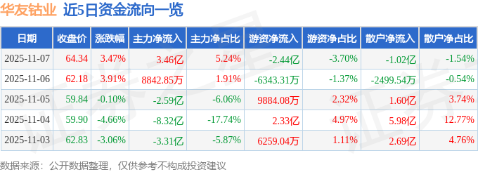 11月7日的资金流向数据方面,主力资金净流入3.46亿元,占总成交额5.24%,游资资金净流出2.44亿元,占总成交额3.7%,散户资金净流出1.02亿元,占总成交额1.54%。