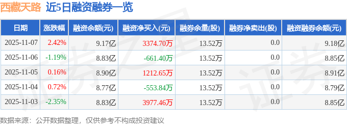 证券之星消息,截至2025年11月7日收盘,西藏天路(600326)报收于12.72元,上涨2.42%,换手率9.01%,成交量122.75万手,成交额15.58亿元。