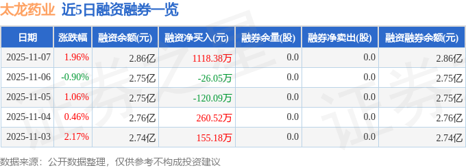 太龙药业融资融券信息显示,融资方面,当日融资买入2469.14万元,融资偿还1350.75万元,融资净买入1118.38万元。融券方面,融券卖出0.0股,融券偿还0.0股,融券余量0.0股,融券余额0.0万元。融资融券余额2.86亿元。