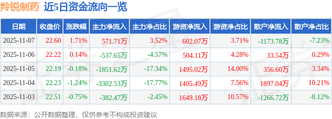 证券之星消息,截至2025年11月7日收盘,羚锐制药(600285)报收于22.6元,上涨1.71%,换手率1.27%,成交量7.19万手,成交额1.62亿元。