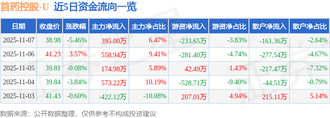 证券之星消息,截至2025年11月7日收盘,首药控股(688197)报收于38.98元,下跌5.46%,换手率2.41%,成交量1.54万手,成交额6107.9万元。