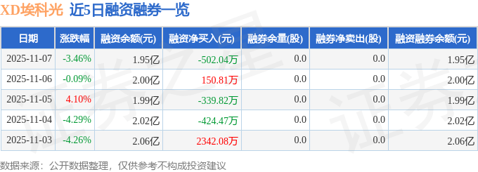 XD埃科光融资融券信息显示,融资方面,当日融资买入277.63万元,融资偿还779.67万元,融资净偿还502.04万元。融券方面,融券卖出0.0股,融券偿还0.0股,融券余量0.0股,融券余额0.0万元。融资融券余额1.95亿元。