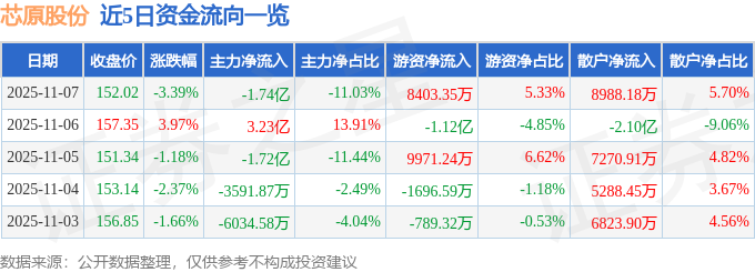 11月7日的资金流向数据方面,主力资金净流出1.74亿元,占总成交额11.03%,游资资金净流入8403.35万元,占总成交额5.33%,散户资金净流入8988.18万元,占总成交额5.7%。