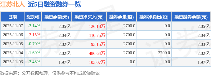 江苏北人融资融券信息显示,融资方面,当日融资买入914.88万元,融资偿还788.71万元,融资净买入126.18万元,连续3日净买入累计330.07万元。融券方面,融券卖出0.0股,融券偿还0.0股,融券余量2700.0股,融券余额6.54万元。融资融券余额2.05亿元。