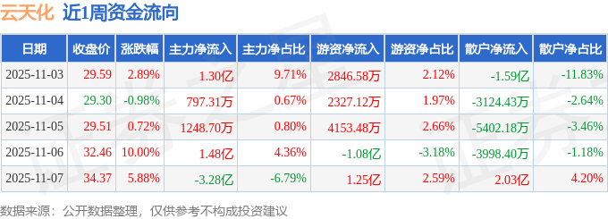 资金流向数据方面,本周云天化主力资金合计净流出2907.75万元,游资资金合计净流入1.11亿元,散户资金合计净流出8149.0万元。本周资金流向一览见下表:
