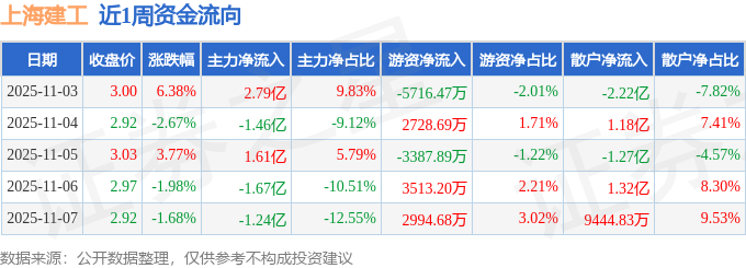 资金流向数据方面,本周上海建工主力资金合计净流入310.66万元,游资资金合计净流入132.22万元,散户资金合计净流出442.88万元。本周资金流向一览见下表: