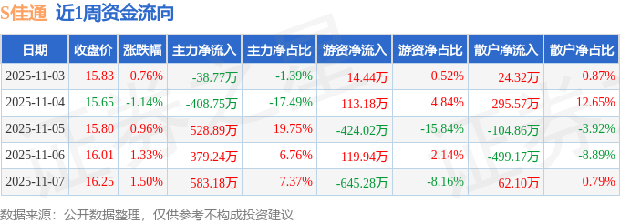 资金流向数据方面,本周S佳通主力资金合计净流入1043.78万元,游资资金合计净流出821.74万元,散户资金合计净流出222.04万元。本周资金流向一览见下表:
