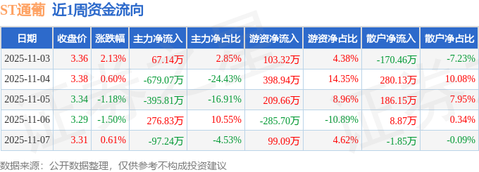 资金流向数据方面,本周ST通葡主力资金合计净流出828.15万元,游资资金合计净流入525.3万元,散户资金合计净流入302.84万元。本周资金流向一览见下表:
