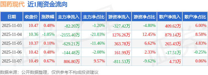 资金流向数据方面,本周国药现代主力资金合计净流出2204.49万元,游资资金合计净流入663.09万元,散户资金合计净流入1541.4万元。本周资金流向一览见下表: