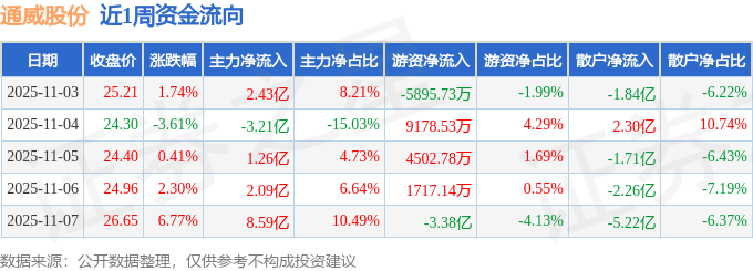 资金流向数据方面,本周通威股份主力资金合计净流入11.16亿元,游资资金合计净流出2.43亿元,散户资金合计净流出8.73亿元。本周资金流向一览见下表: