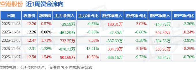 资金流向数据方面,本周空港股份主力资金合计净流入261.83万元,游资资金合计净流出701.26万元,散户资金合计净流入439.43万元。本周资金流向一览见下表: