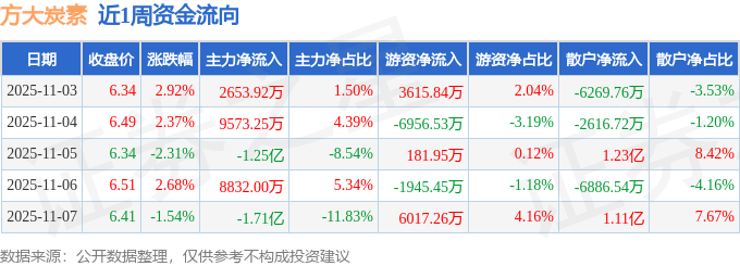 沪深股通持股方面,截止2025年11月7日收盘,方大炭素沪股通持股数为4117.64万股,占流通股比为102.0%。