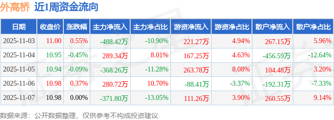 资金流向数据方面,本周外高桥主力资金合计净流出658.42万元,游资资金合计净流入675.15万元,散户资金合计净流出16.72万元。本周资金流向一览见下表:
