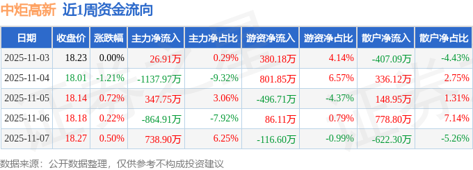 资金流向数据方面,本周中炬高新主力资金合计净流出889.31万元,游资资金合计净流入654.84万元,散户资金合计净流入234.48万元。本周资金流向一览见下表: