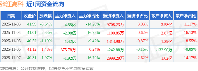 资金流向数据方面,本周张江高科主力资金合计净流出10.83亿元,游资资金合计净流入1.49亿元,散户资金合计净流入9.35亿元。本周资金流向一览见下表: