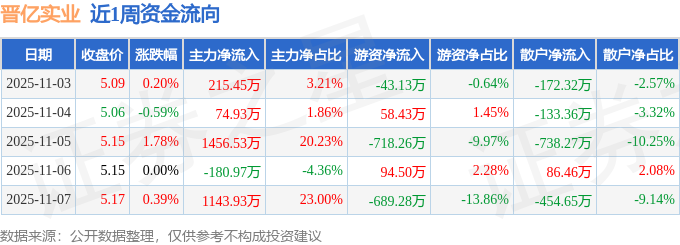 资金流向数据方面,本周晋亿实业主力资金合计净流入2709.88万元,游资资金合计净流出1297.74万元,散户资金合计净流出1412.14万元。本周资金流向一览见下表: