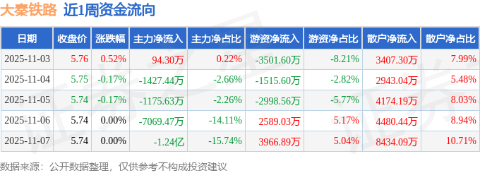 沪深股通持股方面,截止2025年11月7日收盘,大秦铁路沪股通持股数为4.57亿股,占流通股比为252.0%。