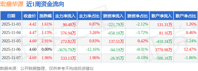 资金流向数据方面,本周宏盛华源主力资金合计净流出2203.41万元,游资资金合计净流出863.51万元,散户资金合计净流入3066.92万元。本周资金流向一览见下表: