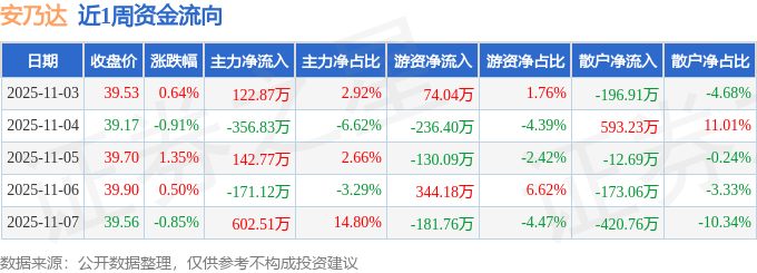 资金流向数据方面,本周安乃达主力资金合计净流入340.21万元,游资资金合计净流出130.02万元,散户资金合计净流出210.19万元。本周资金流向一览见下表: