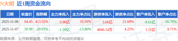 资金流向数据方面,本周C大明主力资金合计净流入4.36亿元,游资资金合计净流入4.14亿元,散户资金合计净流出8.51亿元。本周资金流向一览见下表: