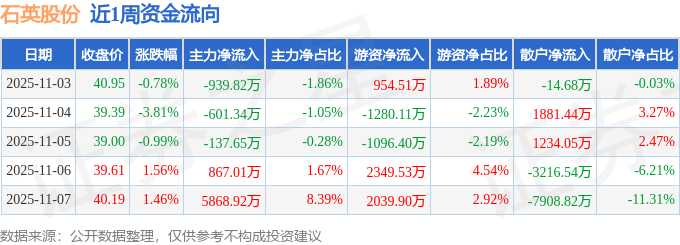 资金流向数据方面,本周石英股份主力资金合计净流入5057.12万元,游资资金合计净流入2967.43万元,散户资金合计净流出8024.55万元。本周资金流向一览见下表: