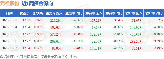 资金流向数据方面,本周元祖股份主力资金合计净流入330.99万元,游资资金合计净流出171.91万元,散户资金合计净流出159.08万元。本周资金流向一览见下表: