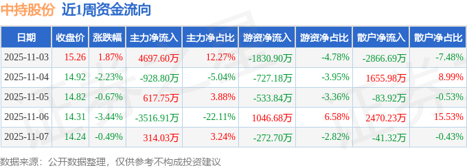 资金流向数据方面,本周中持股份主力资金合计净流入1183.67万元,游资资金合计净流出2317.94万元,散户资金合计净流入1134.28万元。本周资金流向一览见下表: