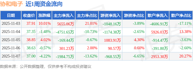 资金流向数据方面,本周协和电子主力资金合计净流出949.55万元,游资资金合计净流出2016.62万元,散户资金合计净流入2966.16万元。本周资金流向一览见下表: