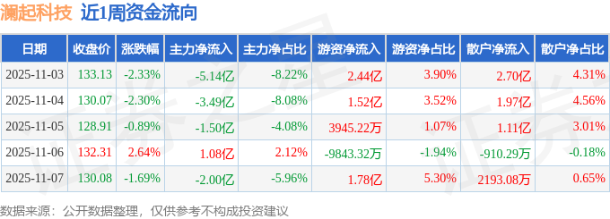资金流向数据方面,本周澜起科技主力资金合计净流出11.06亿元,游资资金合计净流入5.15亿元,散户资金合计净流入5.9亿元。本周资金流向一览见下表: