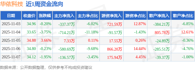 资金流向数据方面,本周华依科技主力资金合计净流出1761.51万元,游资资金合计净流入1689.72万元,散户资金合计净流入71.8万元。本周资金流向一览见下表: