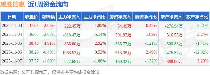 资金流向数据方面,本周威胜信息主力资金合计净流入1996.42万元,游资资金合计净流入353.67万元,散户资金合计净流出2350.09万元。本周资金流向一览见下表:
