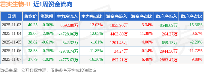 资金流向数据方面,本周君实生物主力资金合计净流出6331.95万元,游资资金合计净流入9447.59万元,散户资金合计净流出3115.64万元。本周资金流向一览见下表: