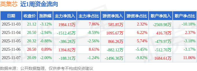 资金流向数据方面,本周英集芯主力资金合计净流入1291.91万元,游资资金合计净流入169.36万元,散户资金合计净流出1461.27万元。本周资金流向一览见下表: