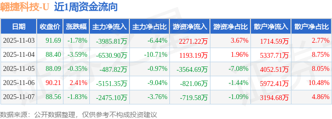 资金流向数据方面,本周翱捷科技主力资金合计净流出1.86亿元,游资资金合计净流出1640.91万元,散户资金合计净流入2.03亿元。本周资金流向一览见下表: