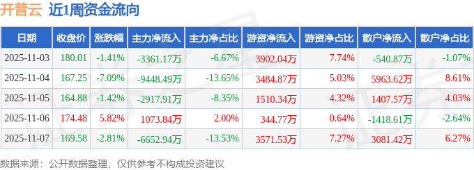 资金流向数据方面,本周开普云主力资金合计净流出2.13亿元,游资资金合计净流入1.28亿元,散户资金合计净流入8493.13万元。本周资金流向一览见下表: