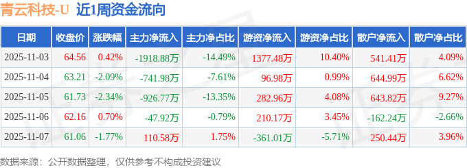 资金流向数据方面,本周青云科技主力资金合计净流出3524.98万元,游资资金合计净流入1606.57万元,散户资金合计净流入1918.41万元。本周资金流向一览见下表: