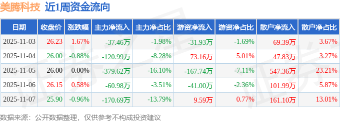 资金流向数据方面,本周美腾科技主力资金合计净流出769.74万元,游资资金合计净流出157.93万元,散户资金合计净流入927.66万元。本周资金流向一览见下表: