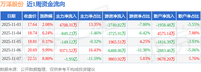 资金流向数据方面,本周万泽股份主力资金合计净流出6400.64万元,游资资金合计净流出1194.37万元,散户资金合计净流入7595.01万元。本周资金流向一览见下表: