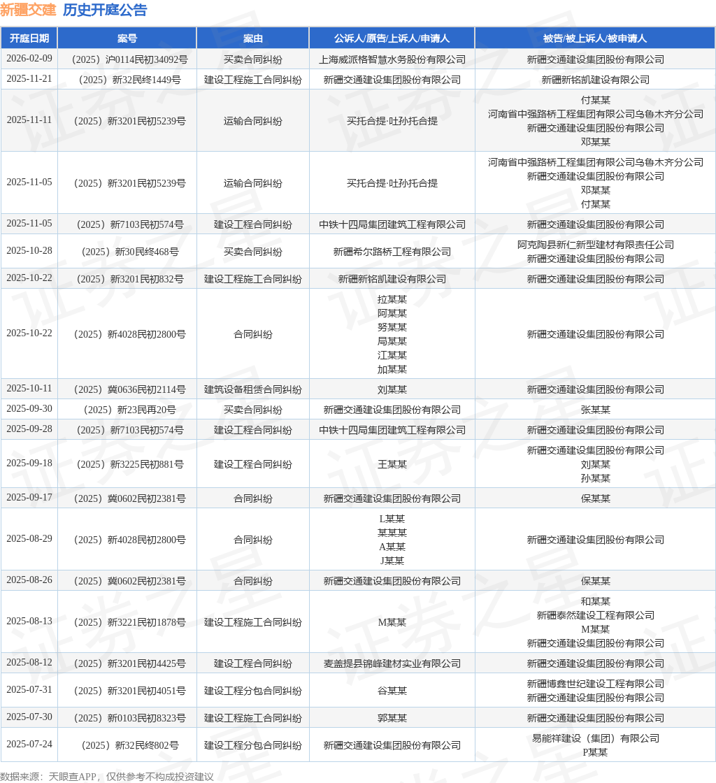 证券之星消息,根据天眼查APP显示,近日公布了一则新疆交通建设集团股份有限公司作为被告/被上诉人的开庭公告,详细内容如下: