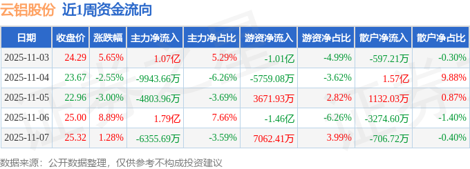 沪深股通持股方面,截止2025年11月7日收盘,云铝股份深股通持股数为1.92亿股,占流通股比为554.0%。