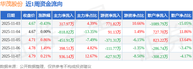 资金流向数据方面,本周华茂股份主力资金合计净流入381.89万元,游资资金合计净流出248.04万元,散户资金合计净流出133.85万元。本周资金流向一览见下表: