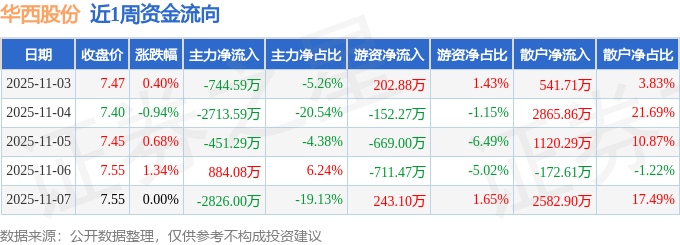 沪深股通持股方面,截止2025年11月7日收盘,华西股份深股通持股数为423.38万股,占流通股比为48.0%。