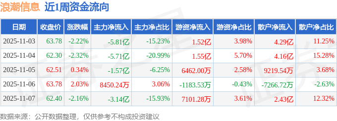 资金流向数据方面,本周浪潮信息主力资金合计净流出15.38亿元,游资资金合计净流入4.31亿元,散户资金合计净流入11.07亿元。本周资金流向一览见下表: