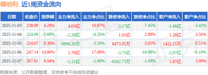 资金流向数据方面,本周德明利主力资金合计净流入5.92亿元,游资资金合计净流出5.69亿元,散户资金合计净流出2284.8万元。本周资金流向一览见下表: