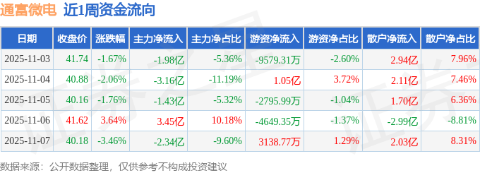 资金流向数据方面,本周通富微电主力资金合计净流出5.45亿元,游资资金合计净流出3388.13万元,散户资金合计净流入5.79亿元。本周资金流向一览见下表: