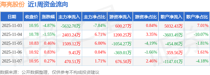 资金流向数据方面,本周海亮股份主力资金合计净流出1240.38万元,游资资金合计净流入1053.74万元,散户资金合计净流入186.64万元。本周资金流向一览见下表: