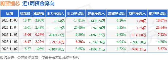 资金流向数据方面,本周蔚蓝锂芯主力资金合计净流出3.44亿元,游资资金合计净流出8811.78万元,散户资金合计净流入4.32亿元。本周资金流向一览见下表: