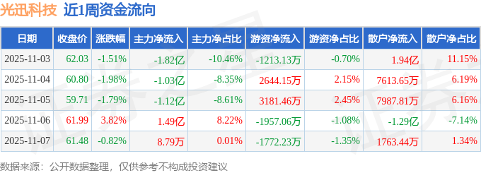 资金流向数据方面,本周光迅科技主力资金合计净流出2.47亿元,游资资金合计净流入883.2万元,散户资金合计净流入2.39亿元。本周资金流向一览见下表: